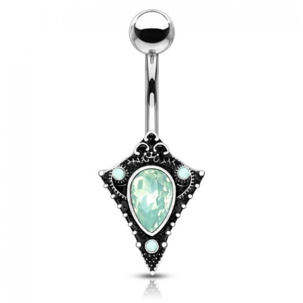 Банан в пупок Винтажная брошь с небесно-бирюзовым опалом толщина 1.6 мм длина 10 мм шарик 5 мм