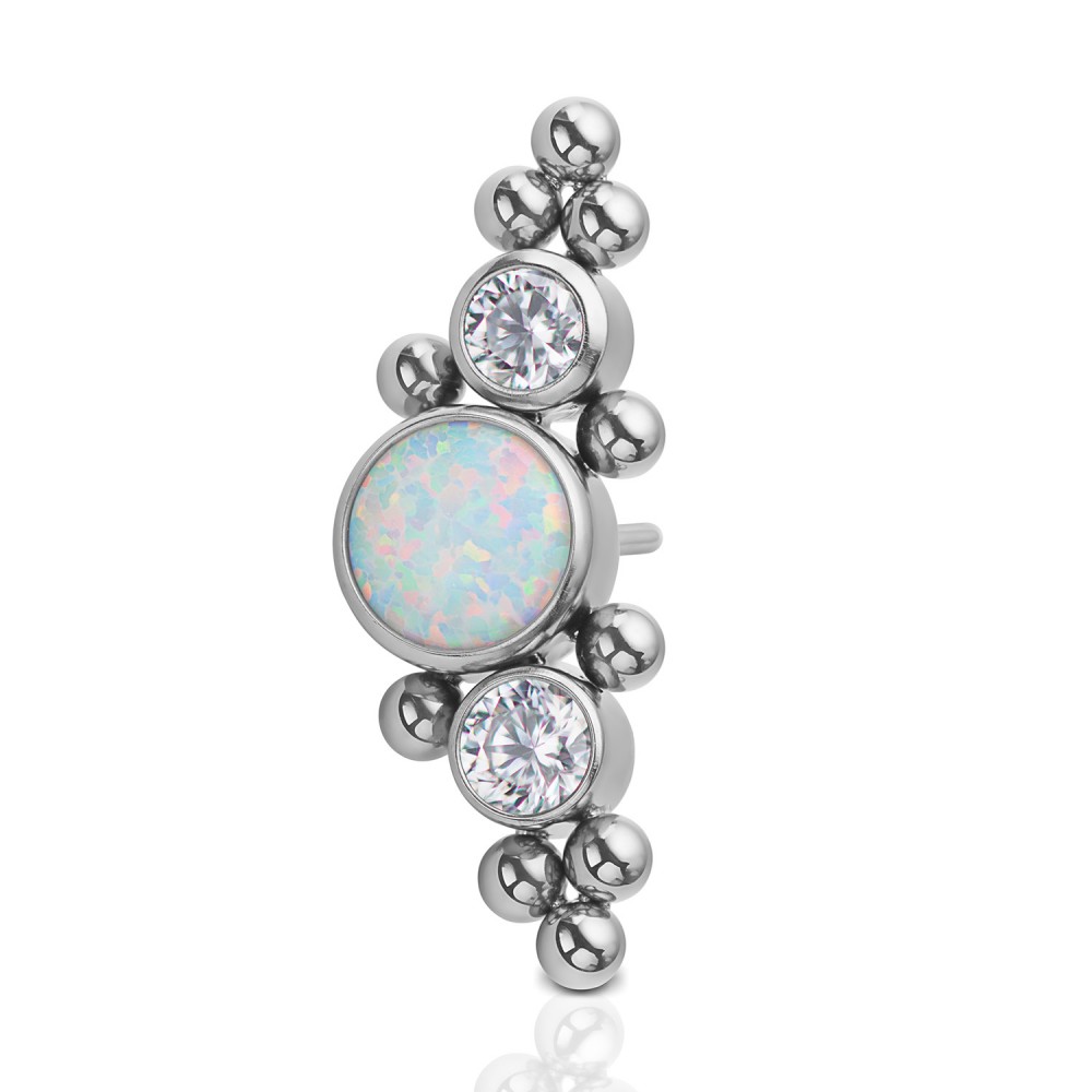 Кластер титановый безрезьбовой с белым опалом, кристаллами Clear CZ и бульонками