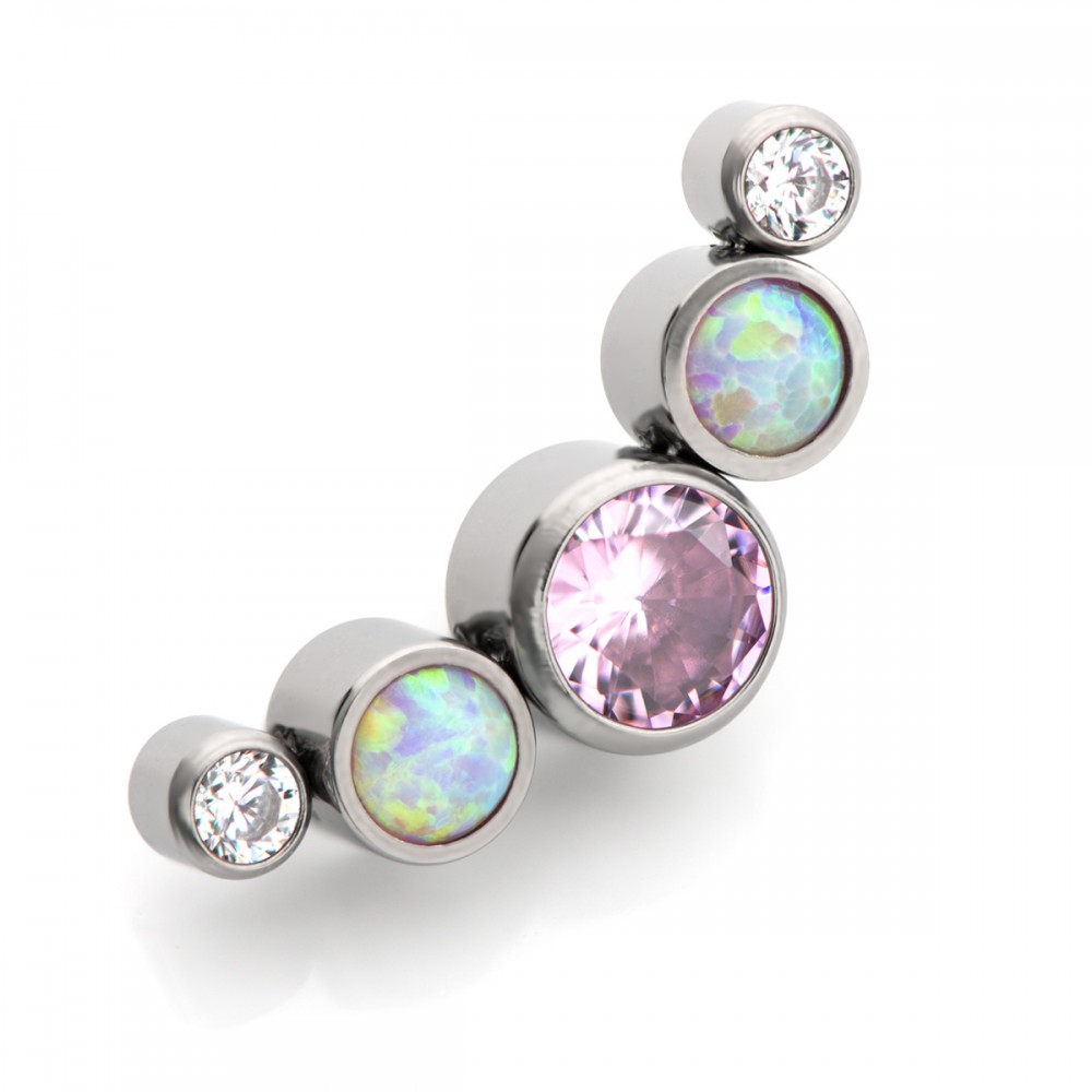 Кластер титановый безрезьбовой с кристаллами CZ и нежно-розовыми опалами