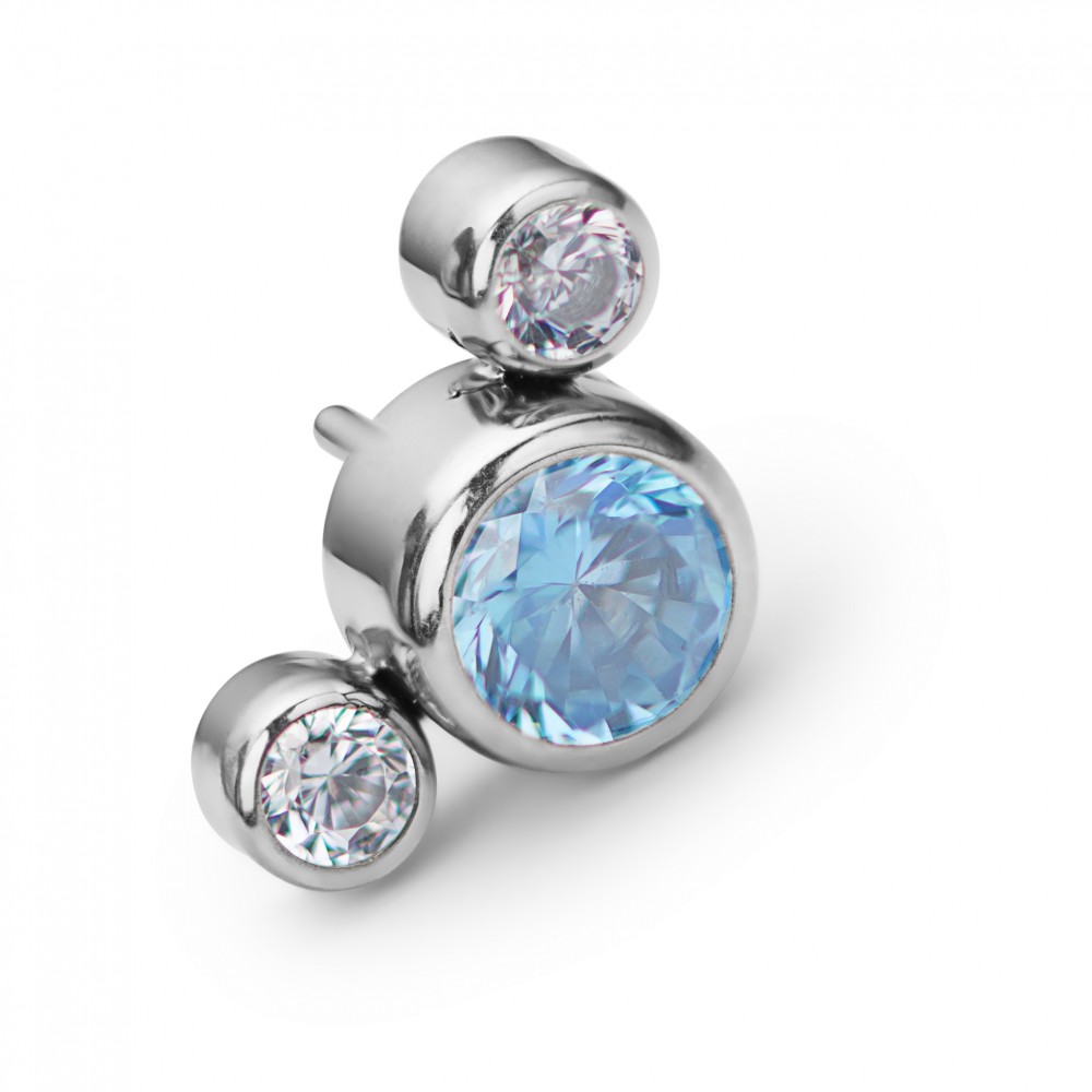 Кластер титановый безрезьбовой с тремя кристаллами CZ (прозрачный/аквамарин)