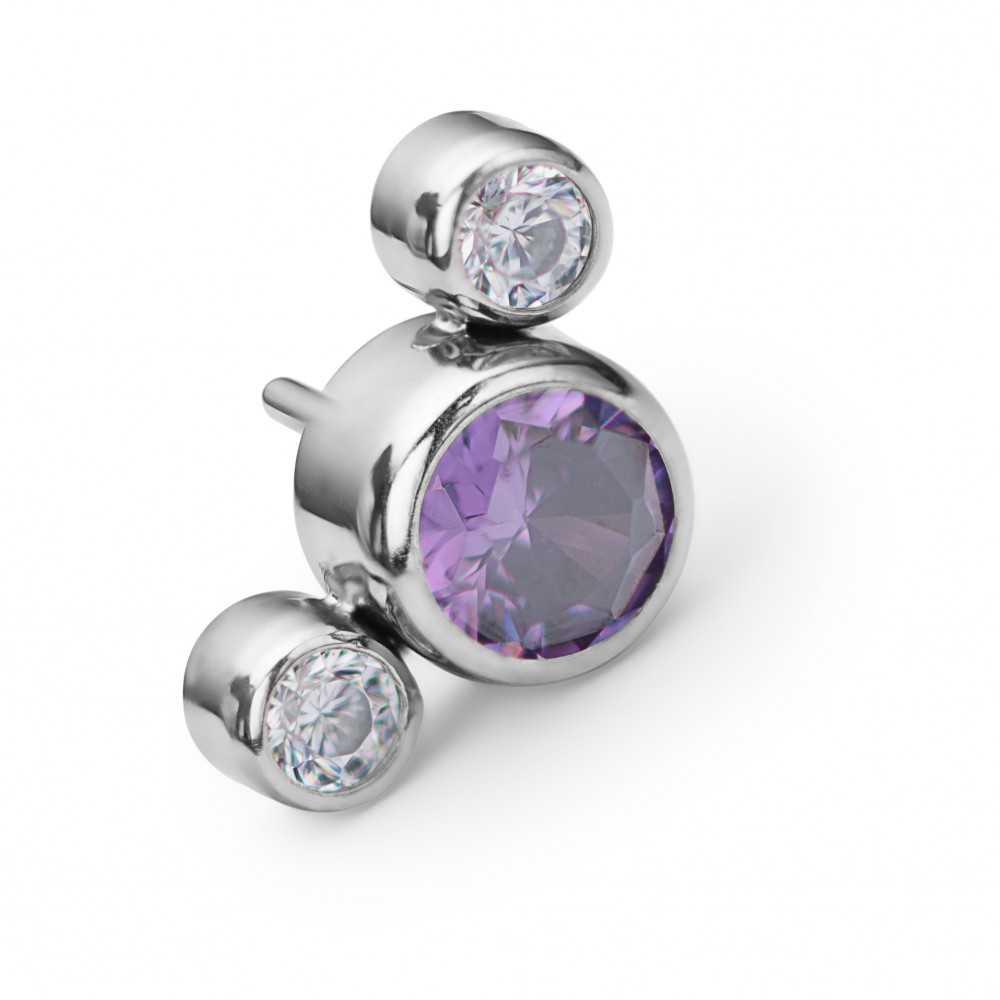 Кластер титановый безрезьбовой с тремя кристаллами CZ (прозрачный/аметист)
