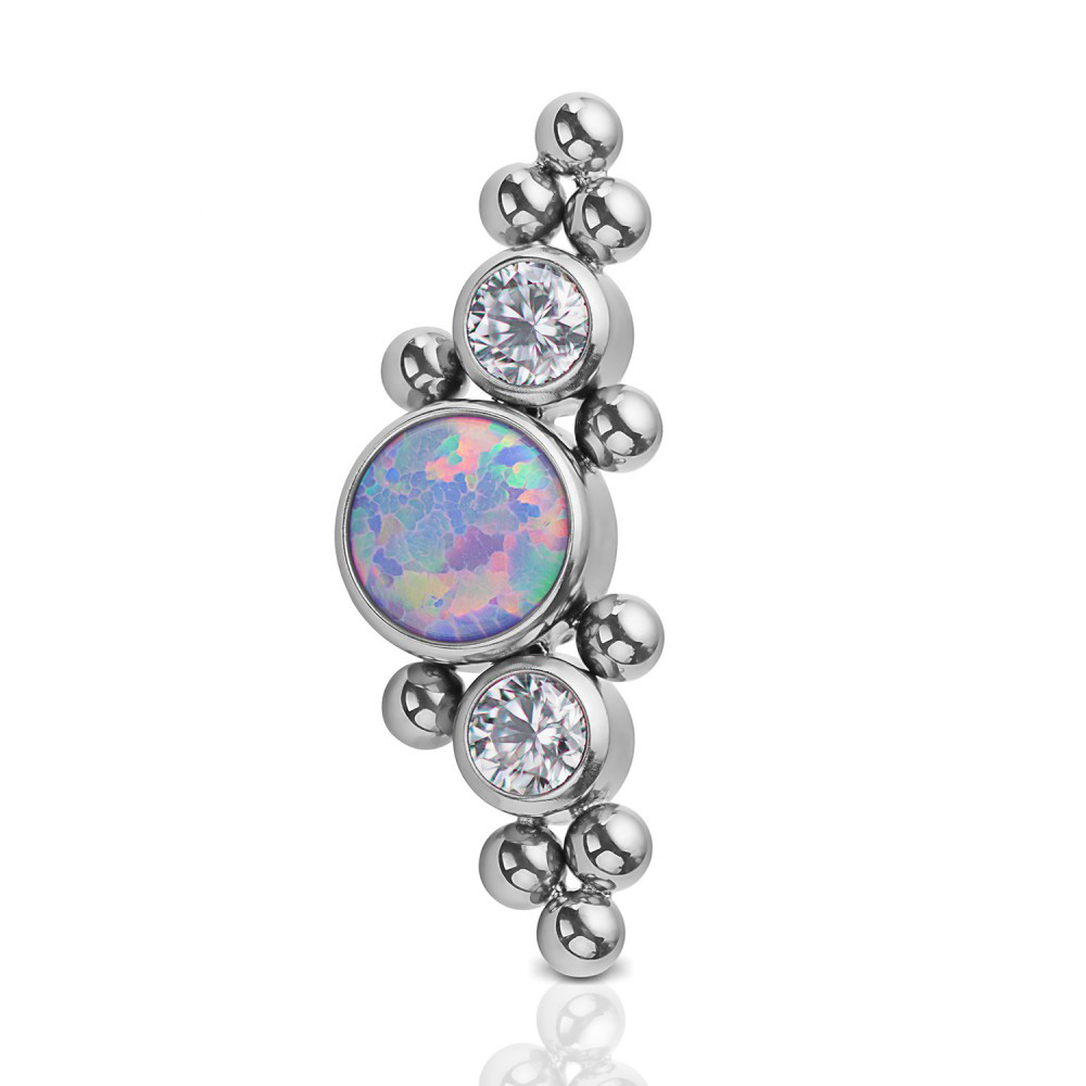 Кластер титановый с фиолетовым опалом, кристаллами Clear CZ и бульонками