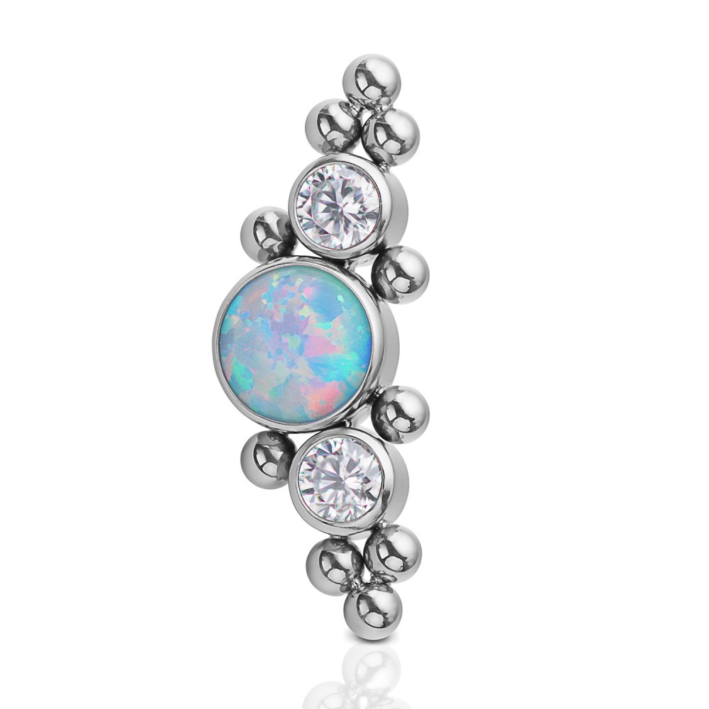 Кластер титановый с голубым опалом, кристаллами Clear CZ и бульонками