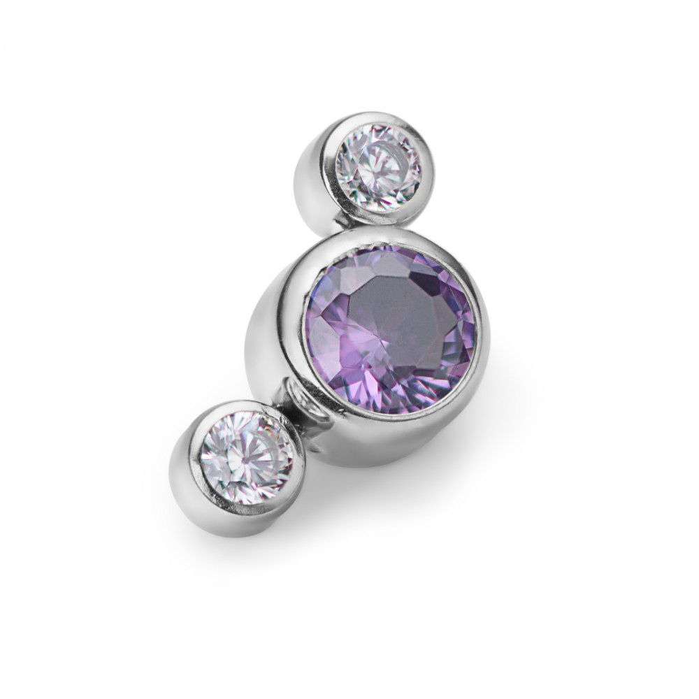 Кластер титановый с тремя кристаллами CZ (прозрачный/аметист)