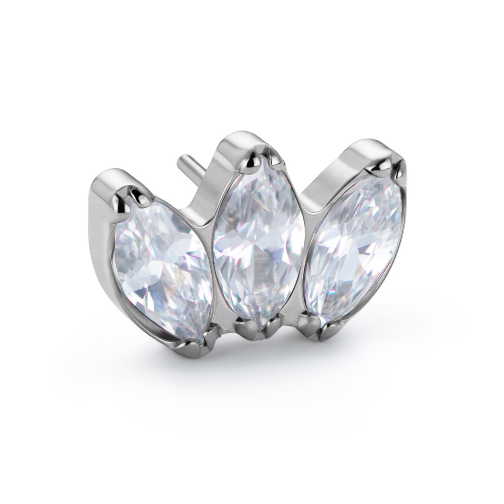 Кластер Triple Marquise (ver. 3) титановый безрезьбовой (Threadless) с кристаллами Clear CZ