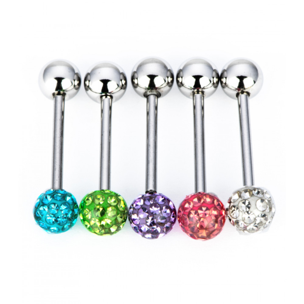 Шарик в стазах покрыт специальным силиконом который позволяет носить во рту.